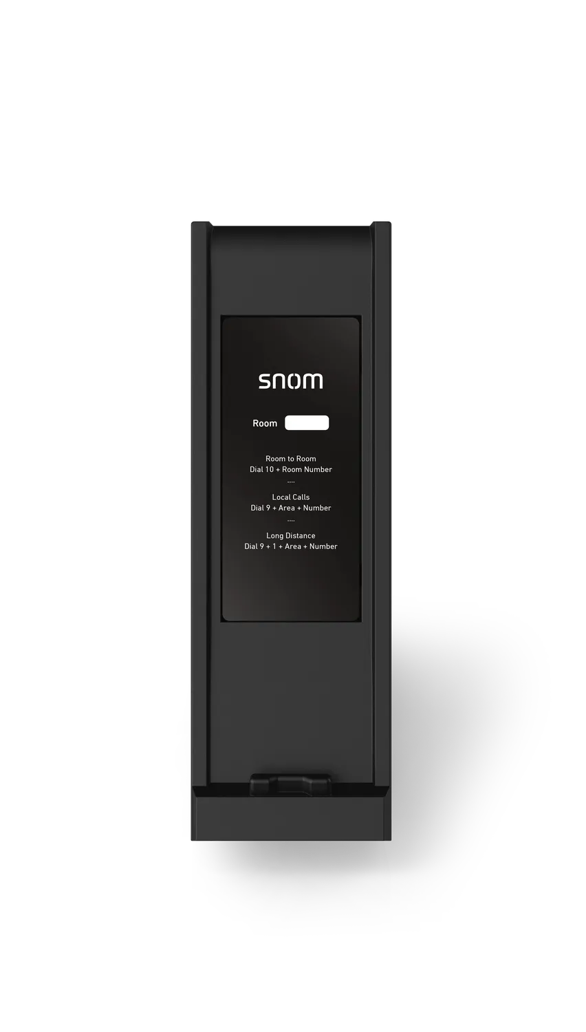 Le poste est équipé de touches de fonction programmables pour l’accès rapide aux services (Réception, Réveil, Room Service). Des indicateurs LED bien visibles signalent les appels entrants ou les messages en attente. Conforme aux exigences du RGPD, il ne stocke aucune donnée personnelle. Il peut être posé sur un bureau ou fixé au mur, offrant une flexibilité totale d’aménagement pour toutes vos chambres. Pour les détails de configuration des touches, consultez la documentation Snom officielle.