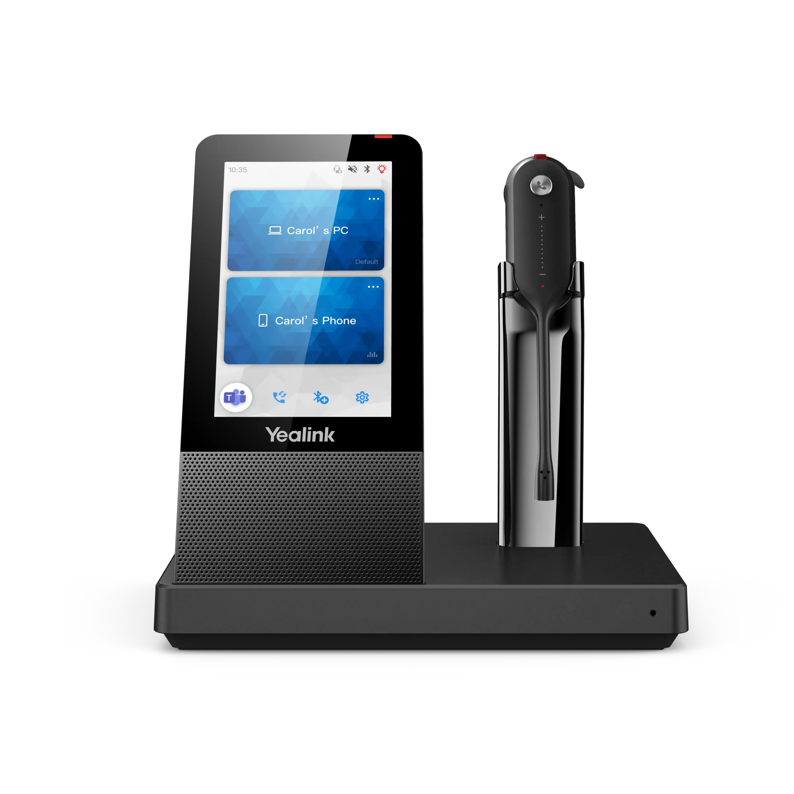 Le Yealink WH67 convertible est bien plus qu’un casque : c’est une Workstation UC (Station de Communication Unifiée) tout-en-un. Il combine un casque DECT convertible ultra-léger (offrant 4 styles de port différents) à une base intelligente dotée d’un écran tactile de 4 pouces. Cette base centralise tous vos appels (PC, Mobile, Téléphone fixe) et sert même de haut-parleur mains-libres et de hub USB.
